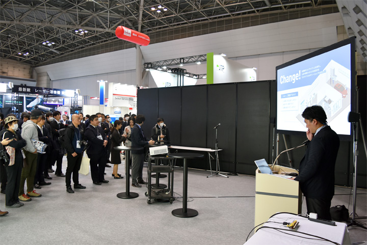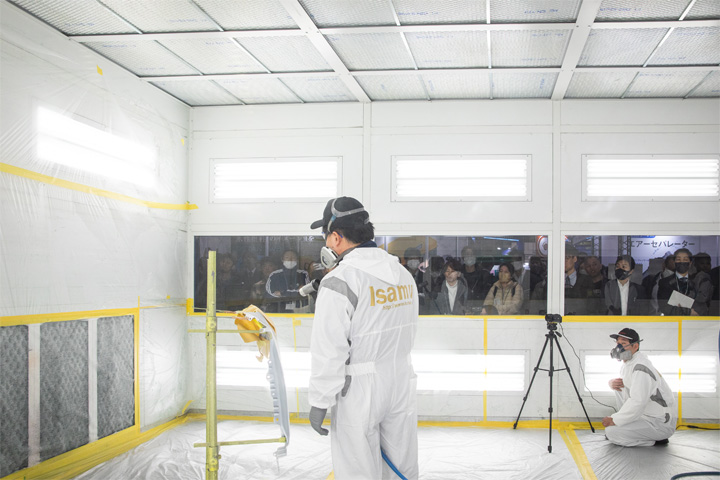 会場内に塗装ブースを設置し、水性塗料の塗装のみならず、測色、調色も含めた塗装の実演を実施いたします。時間短縮、品質向上、人件費削減などの具体的メリットを、デモンストレーションを交えてお伝えする実演コーナーです。